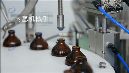 內(nèi)塞機械手將內(nèi)塞吸起來,然后精準(zhǔn)壓進(jìn)瓶口